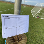 - Each double page covers 1 session and has space for 4 practices / drills.