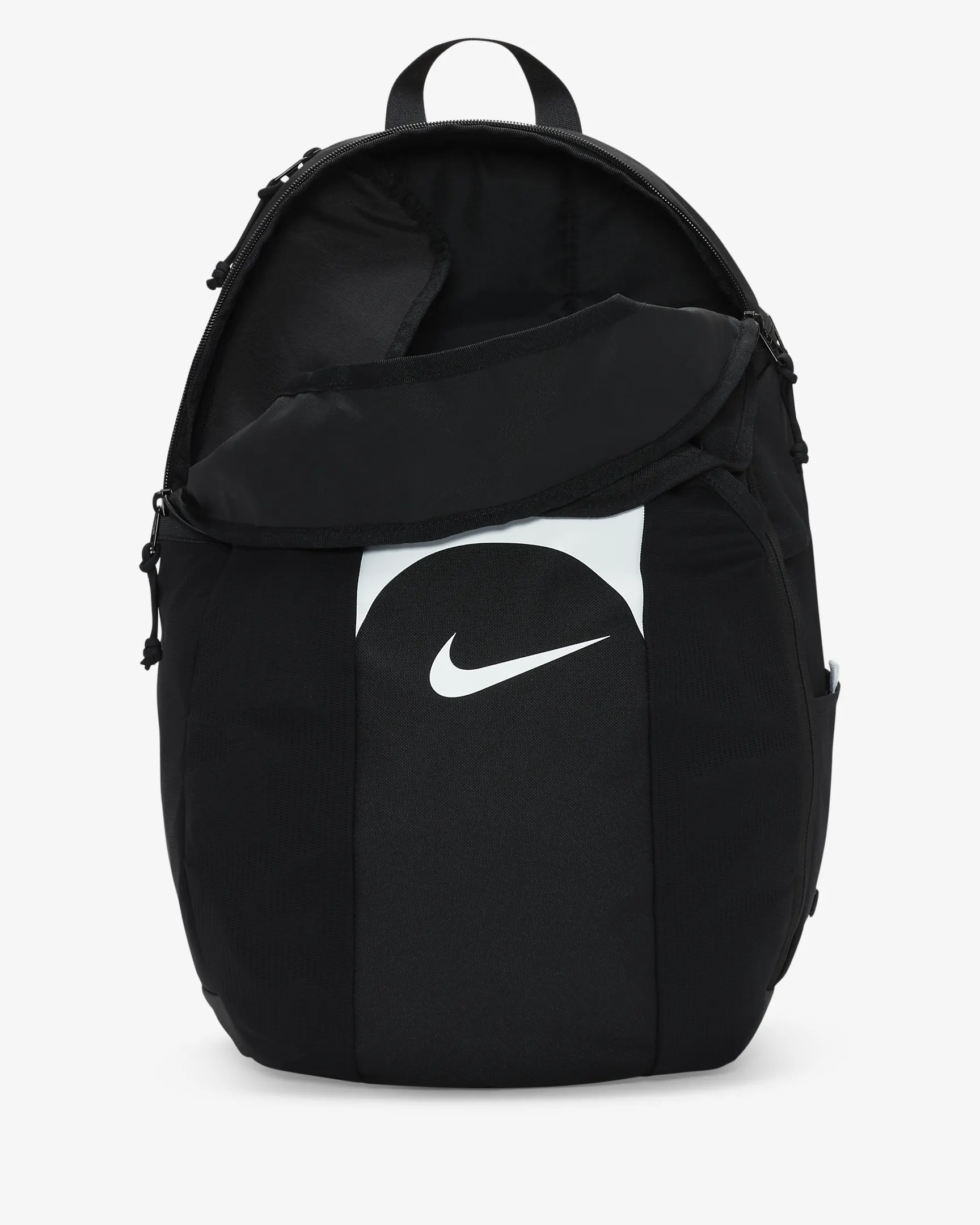 The weather doesn't keep you from training, and it shouldn't keep you from having dry gear. Whether resting on the ground or hanging on a fence, this backpack handles less-than-ideal game and training conditions—and holds your ball in the front pocket. The rain fly features Nike Storm-FIT technology to help provide extra coverage from the elements, while mesh on the bag allows breathability and ventilation on those good-weather days.
